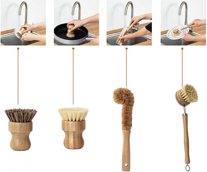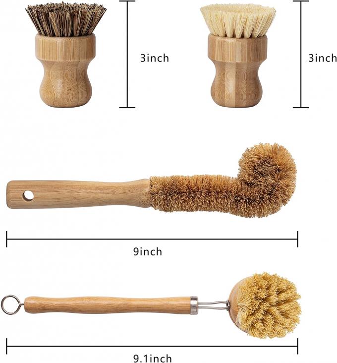 Zero Waste Eco-friendly Natural Wooden Cleaning Scrubber Brush Reusable Bamboo Wood Sisal Dish Cleaning Kitchen Brush